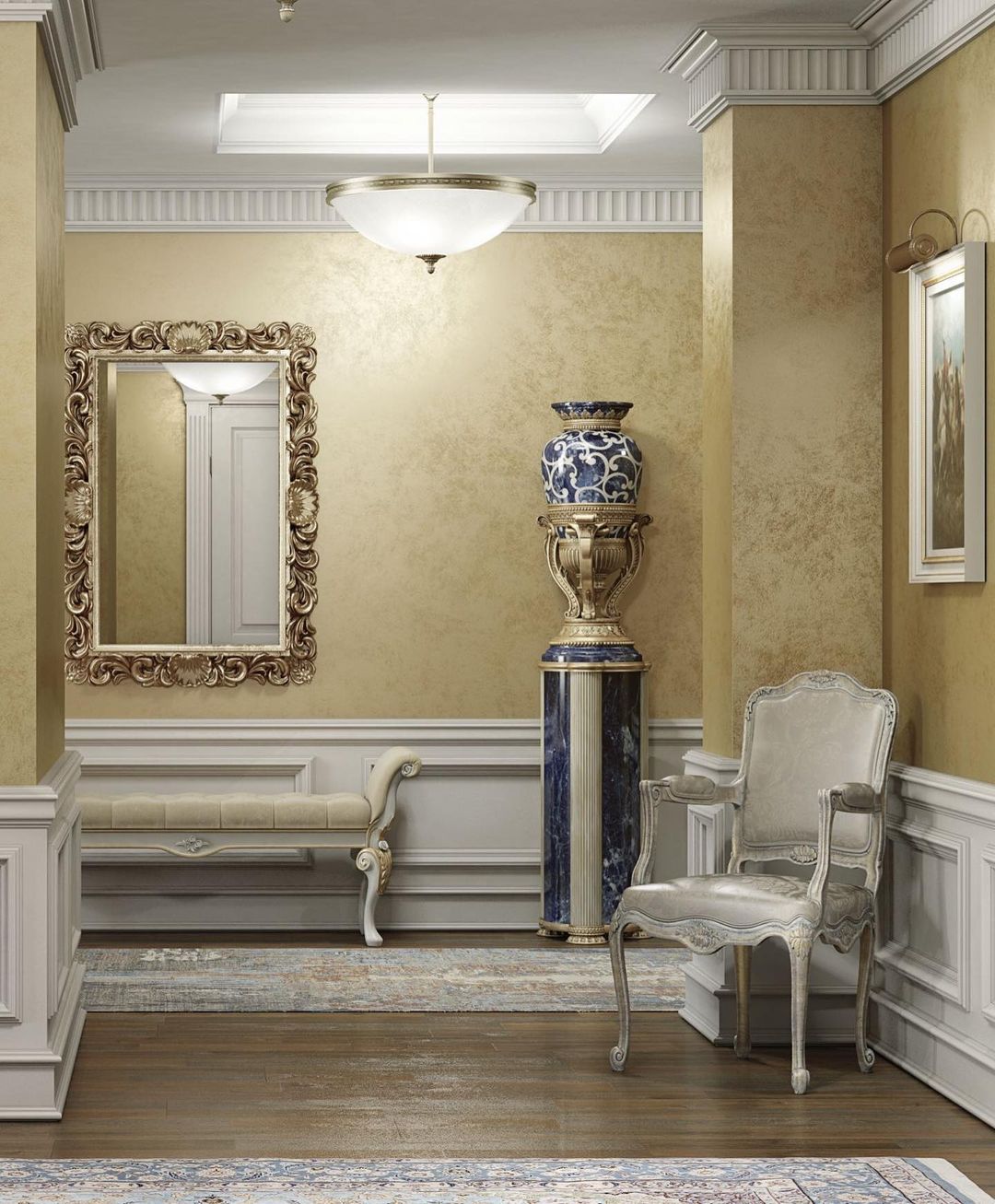 Декоративное покрытие с металлическими частицами в оттенках золотого цвета.