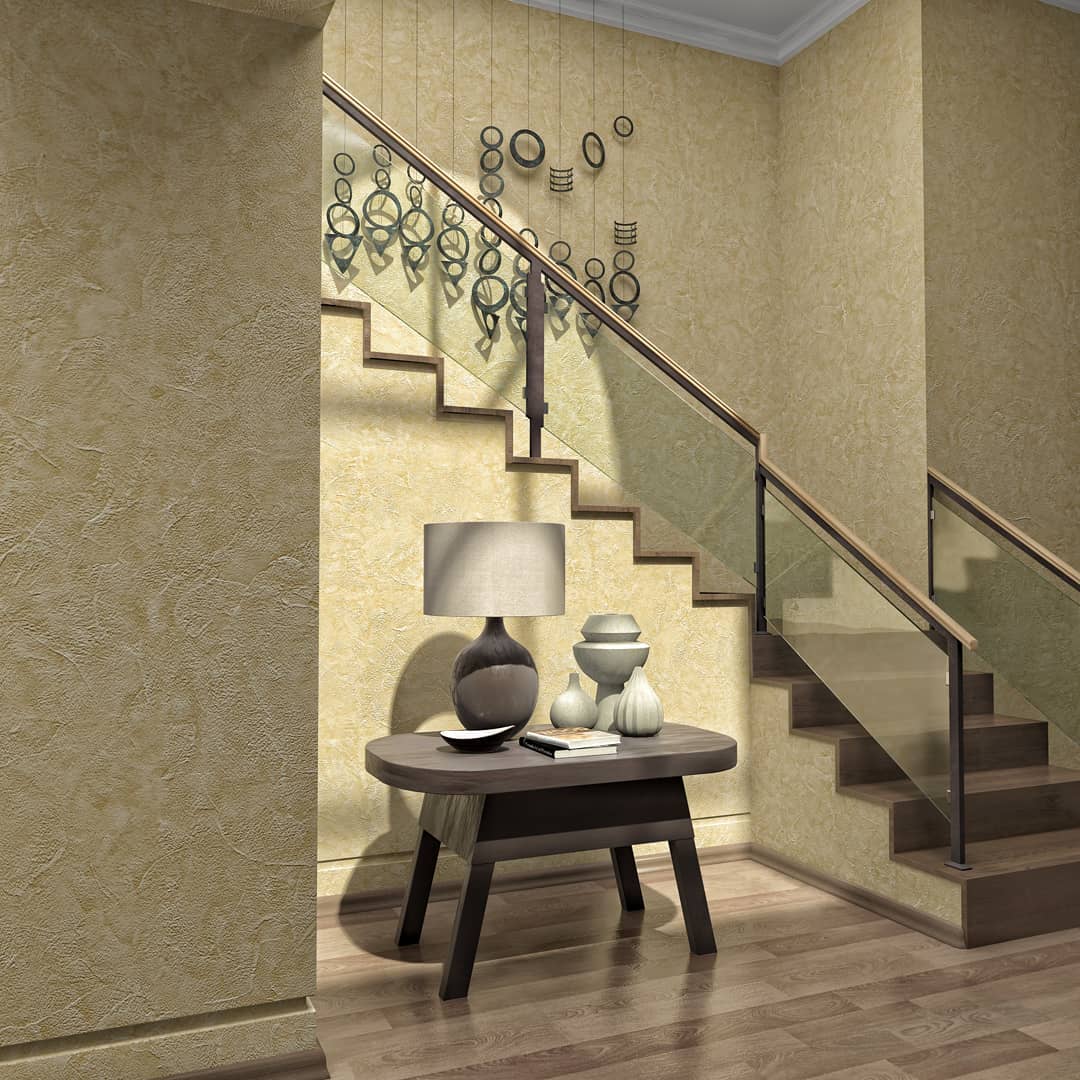 Нежная штукатурка с хлопковыми волокнами, имитирующая фактуру камня.